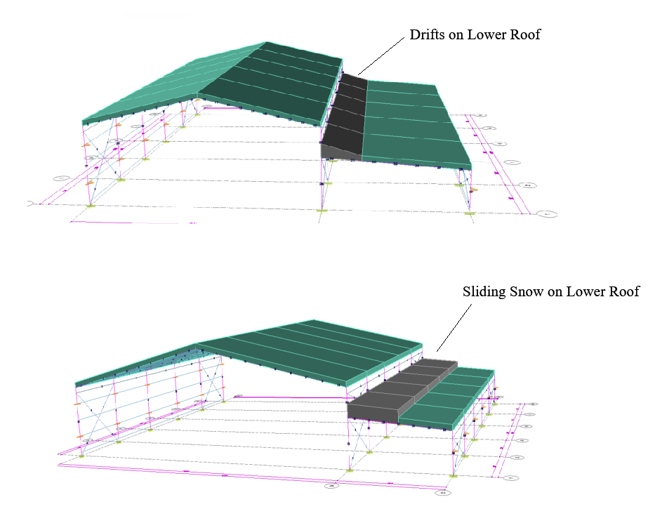 Drifts on Lower Roof & Sliding Snow on Lower Roof