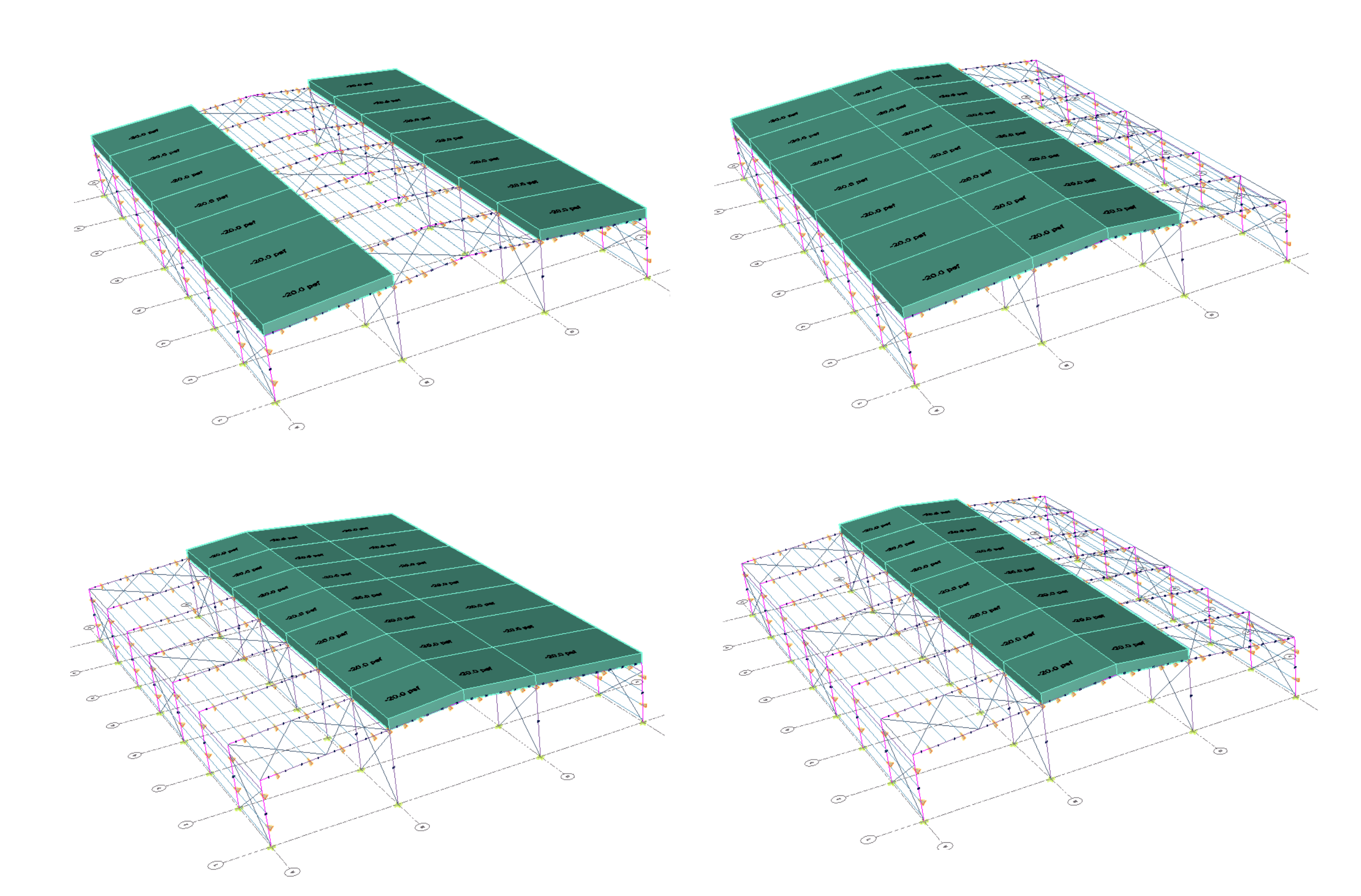 This means that, for the main frame and purlin design of a three-span PEMB, a total of Four Partial Live Loads must be considered, as follows: