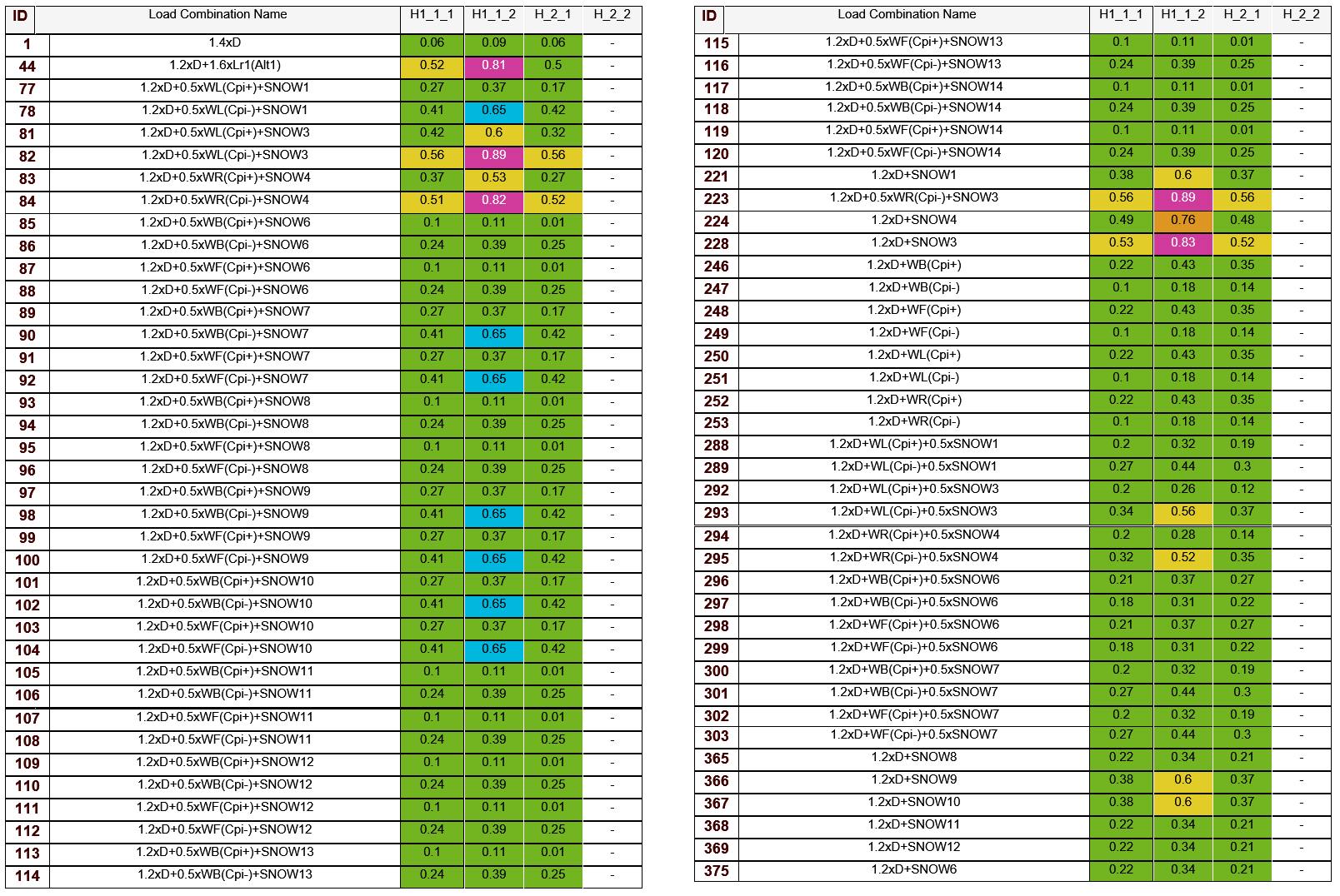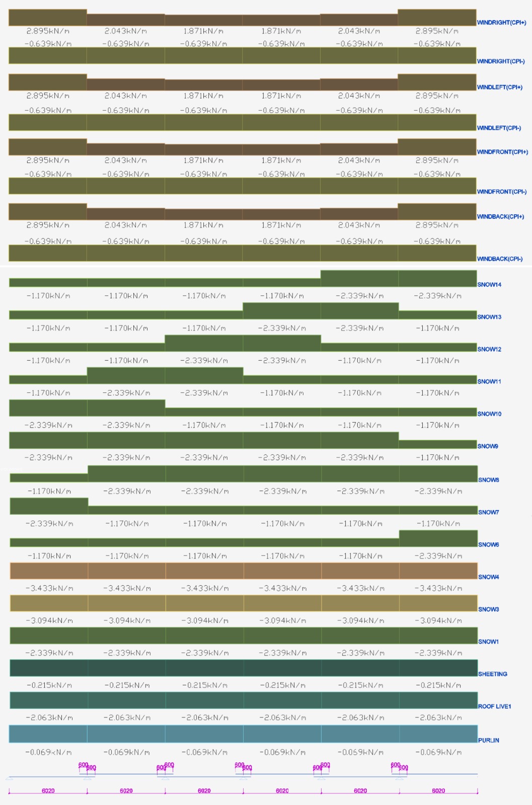 - Partial Snow Loads, Full balanced snow load on any two adjacent spans, and half the balanced snow load on all other spans. (Number of Bays -1. e.g.: 6-1=5)