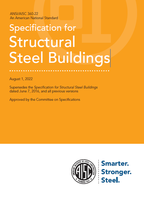 The Specification for Structural Steel Buildings, AISC 360-22 [2], published by the American Institute of Steel Construction, is the primary U.S. standard that defines the design requirements for structural steel buildings.