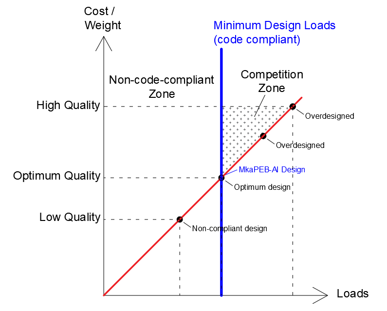On the other hand, designers may sometimes adopt overly conservative assumptions in order to avoid risk or simplify calculations. An overdesigned solution is unfavorable from a business and engineering perspective. Although such a design may satisfy code requirements, it increases steel tonnage, connection demands, fabrication effort, transportation weight, and erection cost without delivering proportional value. In a highly competitive market such as pre-engineered metal buildings, even a modest increase in structural weight can significantly reduce profit margin or make an offer less competitive. Overdesign therefore does not represent added intelligence or added safety beyond what is required; in many cases, it reflects inefficiency in load definition, member selection, or optimization strategy.