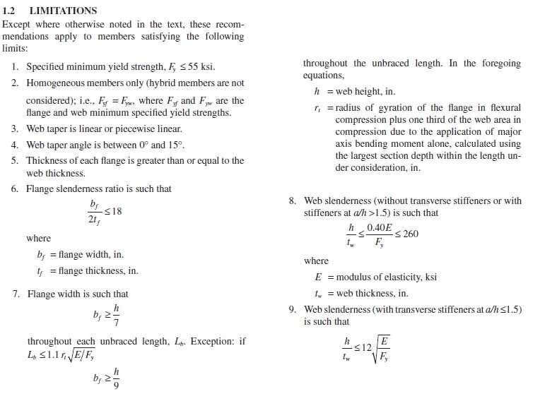 Limitations from AISC 25 Steel Design Guide