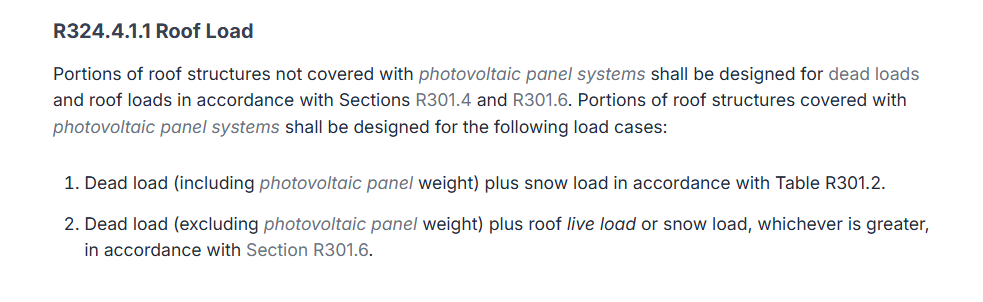 1. Dead load (including photovoltaic panel weight) plus snow load in accordance with Table R301.2(1).