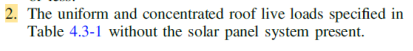 2- The uniform and concentrated roof live loads specified in Table 4.3-1 without the solar panel system present.