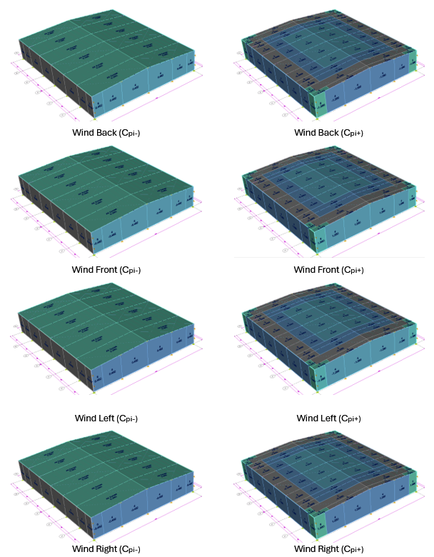 By separating MWFRS and C&C in the model and in the generated load cases, MkaPEB avoids a common practical mistake: using global pressures to design local envelope components, or using local peak pressures to size the entire primary system—both of which can lead to inefficient or unsafe designs.